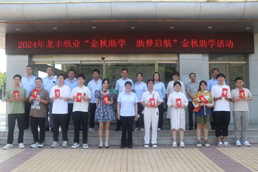金秋蕩漾赤子心,助學(xué)放飛學(xué)子夢。為落實公司對員工及家屬的關(guān)心關(guān)愛,激勵干部員工奮發(fā)向上,助力莘莘學(xué)子筑夢未來,8月23日下午,龍豐紙業(yè)舉行2024年“金秋助學(xué)  助夢啟航”金秋助學(xué)活動,公司副總經(jīng)理馮東望,紀(jì)委書記、工會主席周霞以及部分新錄取大學(xué)生和家長參加座談會。
