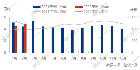 2021-2022年雙膠紙出口數(shù)量及均價對比圖